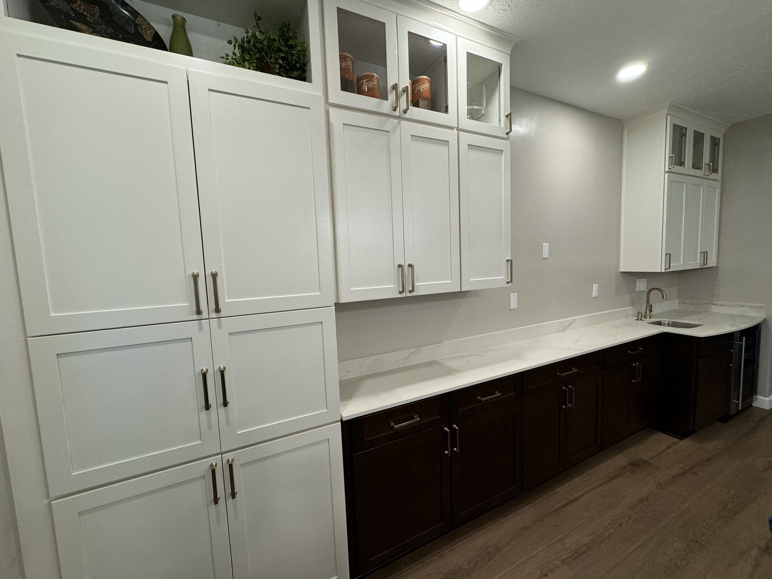At Tri County Home Pros, we recently had the pleasure of completing an interior remodeling project that transformed a dining space in Lafayette, IN, into a modern and functional area that seamlessly blends style and utility. Our latest renovation features a sleek mini fridge, a strategically placed sink, and beautifully crafted custom cabinets and countertops, all designed to enhance the space's overall appeal.